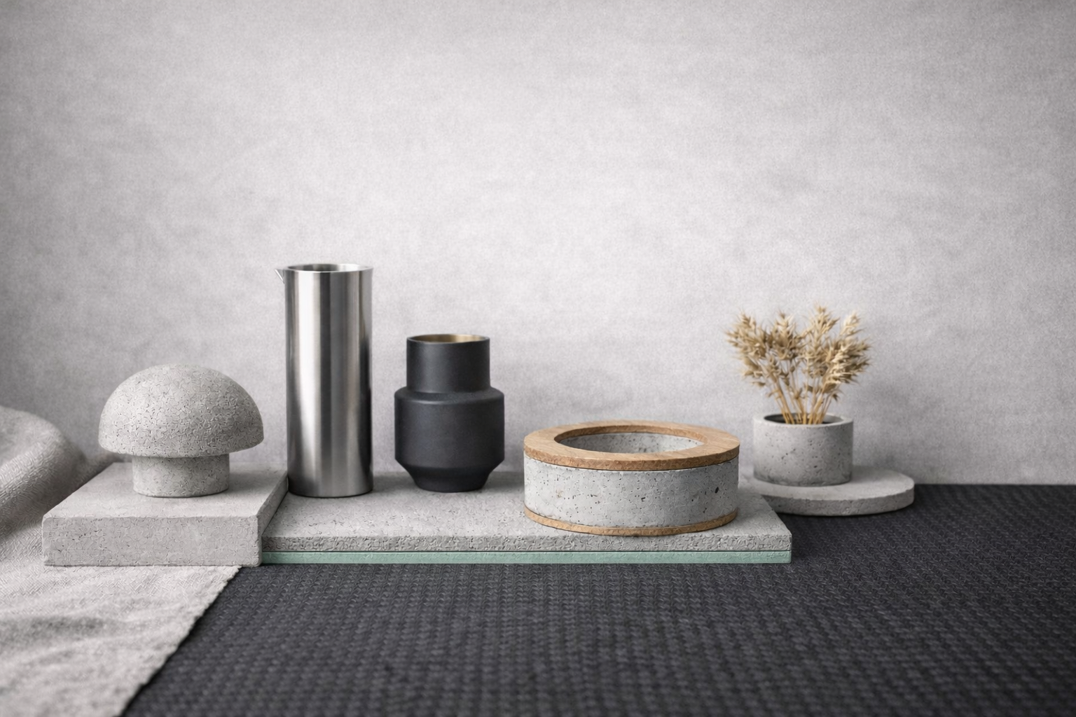 Nem dekorációban gondolkodunk.Tárgyaink a tér részeként születnek.Anyag, forma és arány együtt határozza meg őket.